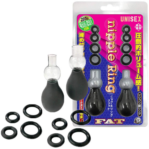 乳首やクリを吸引、リングで締め付けるポンプ付きニップルリング ファット(4サイズ2セット)。ノーマル版と比べてリングの厚みを二倍にしたことで締め付け感が大幅増!締め付け感を味わうもよし、開発用としても最適です。男女兼用