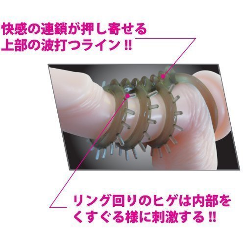 新しい刺激と快感に出会える!男根をしっかりと締め付け、持久力アップを強力にサポートする4連リング仕様の男性補助グッズ。タイプBは上部3つのリングに付いたトゲが、くすぐるように刺激を与える特殊形状!さらに連結部分の波形状が相手の敏感なところを責め立てます。また、リングを玉袋に通すか通さないかで体感する刺激が変化!いつもと違う快感と持続力で、貴方の日常を変えるペニスリングです。