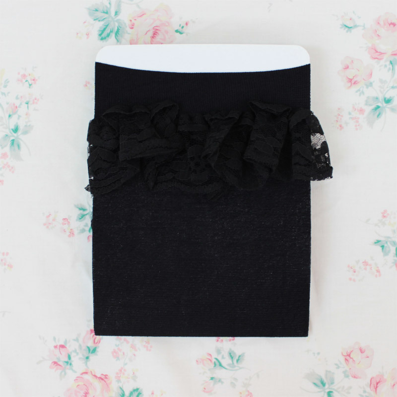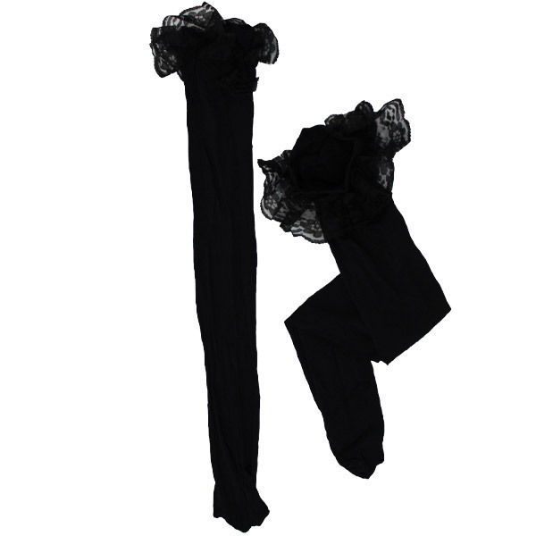 > 【440円★数量限定】レース付きニーハイ 黒×黒<お一人様1点限り>