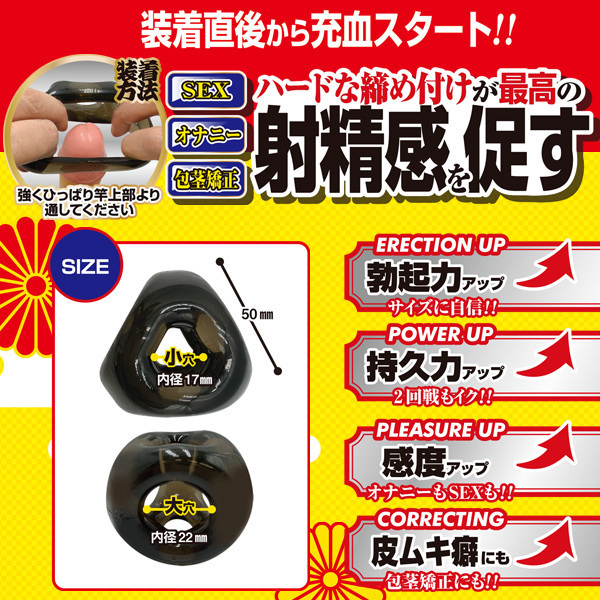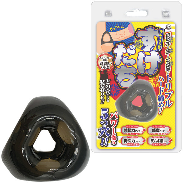5つの穴で多彩な装着方法を実現したマルチコックリング!伸縮性の高いエラストマー素材を採用しており、ピタッとフィットして勃起力や持久力など男性機能を高めてくれる機能性バツグンのコックリング。根元&竿&玉の3点をハードに締め上げ、最高の射精感を促します!SEX中の激しいピストンでも抜ける心配もありません。ご自分に合った装着方法をみつけて、SEX・オナニーを楽しもう♪