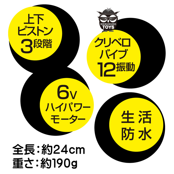 毎秒3往復!超高速ピストンで奥を貫く6Vモーター内蔵の電池式バイブ。リアルでは体験できない3段階スピードでドコドコと激しく奥突き!さらに12種類の目にも止まらぬ高速クンニで追い打ちをかける♪単4電池を4本使用、ブラックカラー |