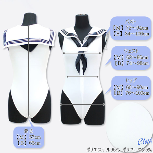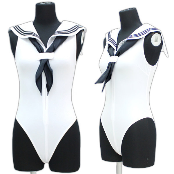 大人気のセーラー服とレオタードが合体!セーラー襟+スカーフ付きセーラーレオタード「セーラーノースリーブレオタード 白 BIG」。襟とスカーフの紺色をアクセントにした爽やかな白ベースのノースリーブレオタード。深めのハイレグ&ハーフバック、ぴちっとしたフィット感がクセになるので、拘束用としても良さげなレオタードです。フロントファスナーは前開きの大胆仕様で着脱も簡単!スキッパー風にもセクシーな露出スタイルにもアレンジが可能です。※水洗い可、塩素系漂白剤による漂白不可、アイロン不可、ドライクリーニング不可、色落ちの可能性があります。 |