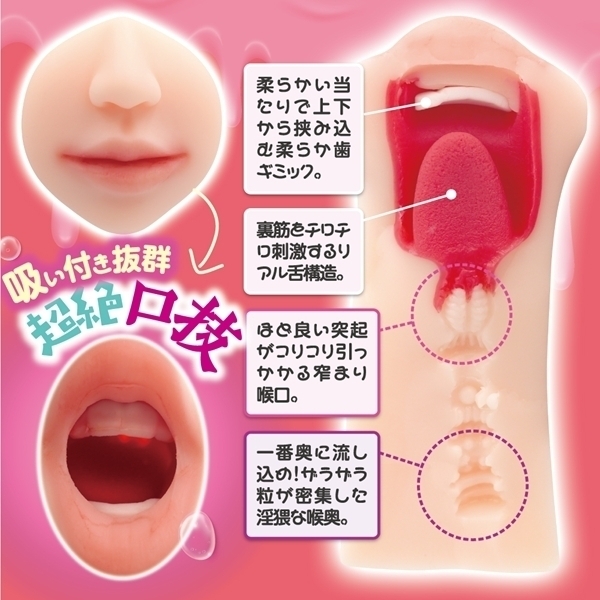 | リアルな使用感を追求した非貫通オナホです♪独自の設計で、内部には柔らかな歯とリアルな舌が配置され、自然な感触を楽しめます!喉の奥は徐々に細くなる構造で、しっかりとフィットし、心地よい刺激を与えてくれます♪突起やイボが密集した内部構造がアクセントになり、リズミカルな心地よさを提供します!しっかり空気を抜くことで強力なバキュームが生まれ、安定感のある使い心地が楽しめます♪使いやすいサイズ感で、お手入れも簡単にできるのが魅力!耐久性もあり、長く愛用できる設計です♪リラックスタイムを充実させたい方におすすめのアイテムです!  |