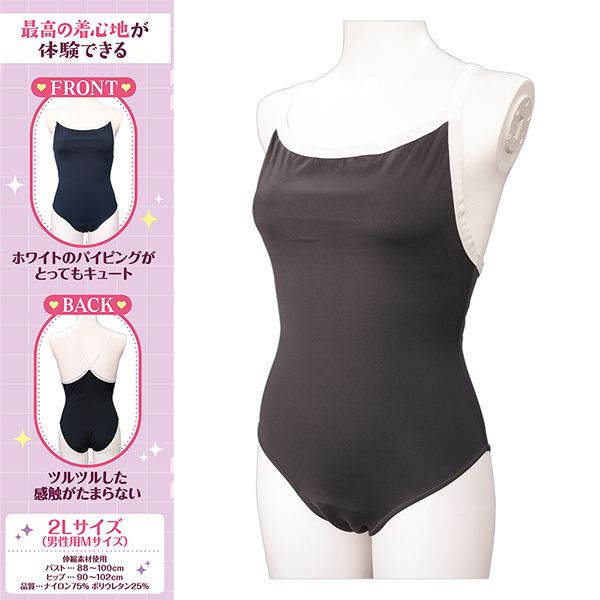 | かわいらしさと清潔感を兼ね備えた紺色スクール水着です!フィット感のある生地がしっかりと体に寄り添い自然なシルエットを演出します♪ホワイトのパイピングがアクセントになりスポーティーかつキュートな印象をプラス!伸縮性のある素材で動きやすく快適な着心地を実現♪男性用Mサイズ相当の2Lサイズ設計でおとこの娘にもぴったりフィット!バスト88〜100cm・ヒップ90〜102cmに対応しています♪ワレメ風の立体カップ構造により♪衣装としての完成度を高めています!コスチュームやパフォーマンス用としてもおすすめです♪●TMT-1837  |