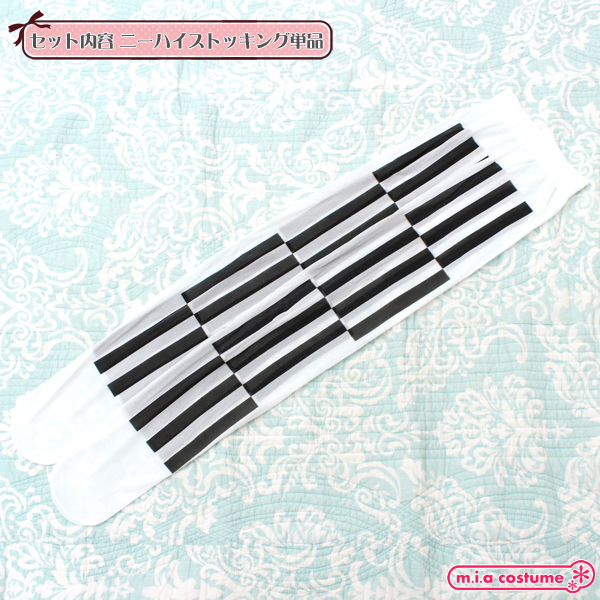 > 【90円★数量限定】切り替えストライプ柄ニーハイストッキング 色白×黒<お一人様1点限り>