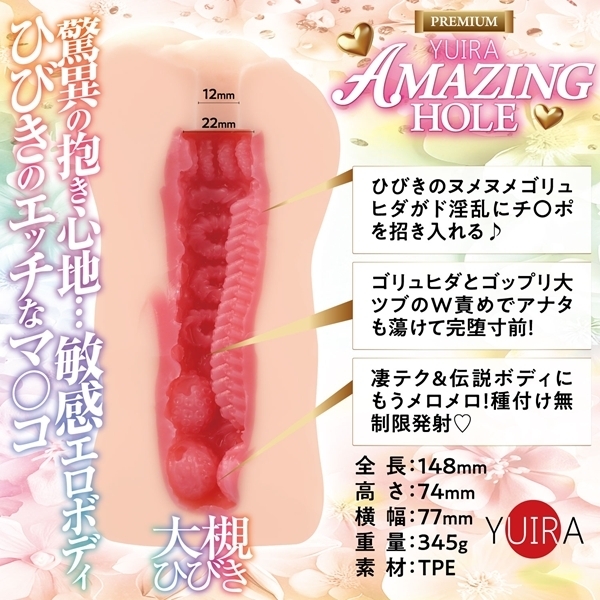 国内販売限定の非貫通オナホです!レジェンド女優・大槻ひびきをイメージして開発されたモデルでリアルな質感と使用感にこだわった設計です♪内部は2層構造を採用しており異なる素材の組み合わせによって多彩な刺激を楽しめます!内径はφ12mm〜22mmで挿入時のフィット感と可変性を実現♪重量は約345gと持ちやすく安定した使用感が特徴です!ツブ構造とウェーブパターンを内壁に配置し繊細で刺激的な感触を生み出します♪なめらかな表面のグレートスキン仕様で手に吸い付くような触り心地です!さらに開封後のお楽しみとしてランダム生写真1枚が付属します♪ |